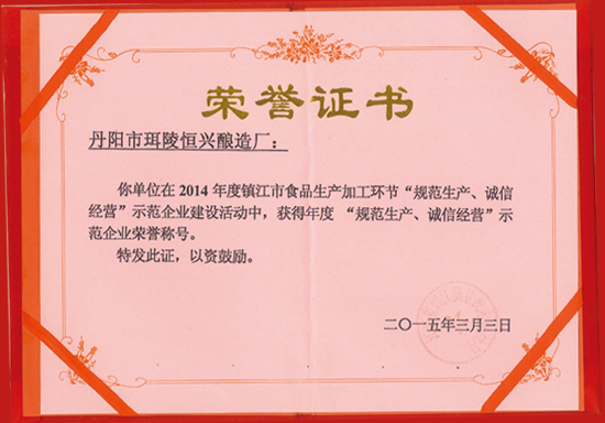 年度“規(guī)范生產(chǎn)、誠(chéng)信經(jīng)營(yíng)”示范企業(yè)